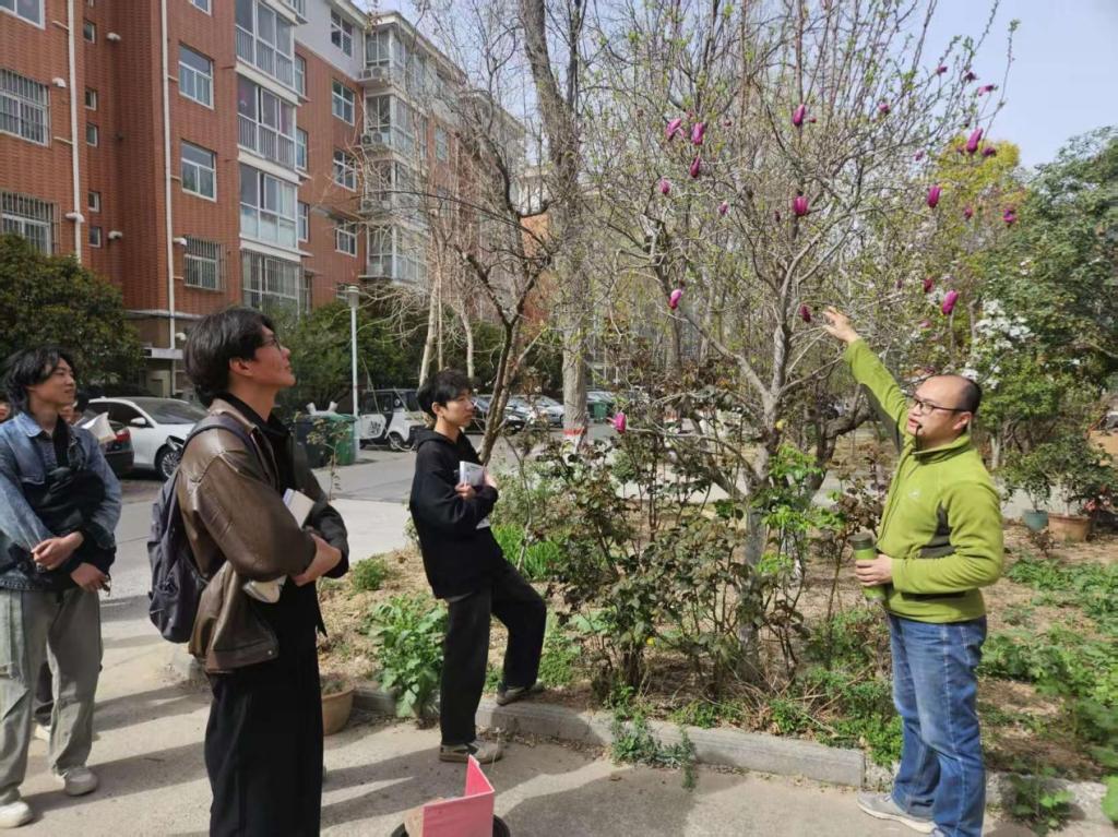 在活动过程中,教师第三党支部党员、树木学课程教师刘兴洋同志介绍了树木的种类、习性等相关树木知识,王晓冰同志同步剖析园林树木固碳释氧、调节微气候等生态功能,两位老师分别从个人、家庭、国家等层面引导学生从科学视角理解“绿水青山就是金山银山”“人与自然是生命共同体”等习近平生态文明思想的深刻内涵。参加此次活动的师生认真聆听,现场气氛积极热烈。