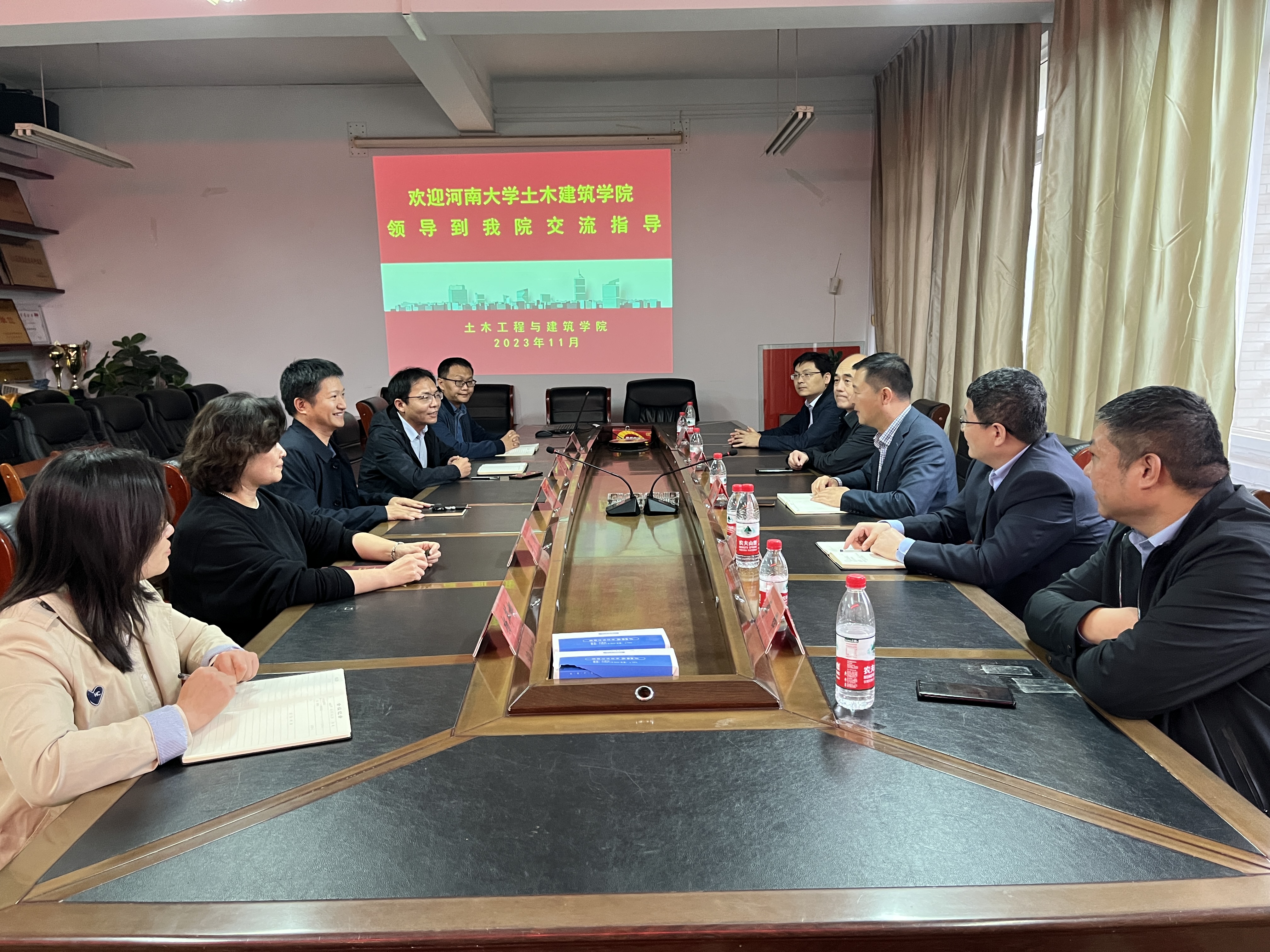 汤沛首先对河南大学土木建筑学院领导班子一行表示热烈欢迎,并介绍了我校土建永利概况及班子成员。潘林详细介绍了土建学院在学科建设、人才培养、科学研究、课程思政、师资建设等方面的主要做法和取得的成绩。
