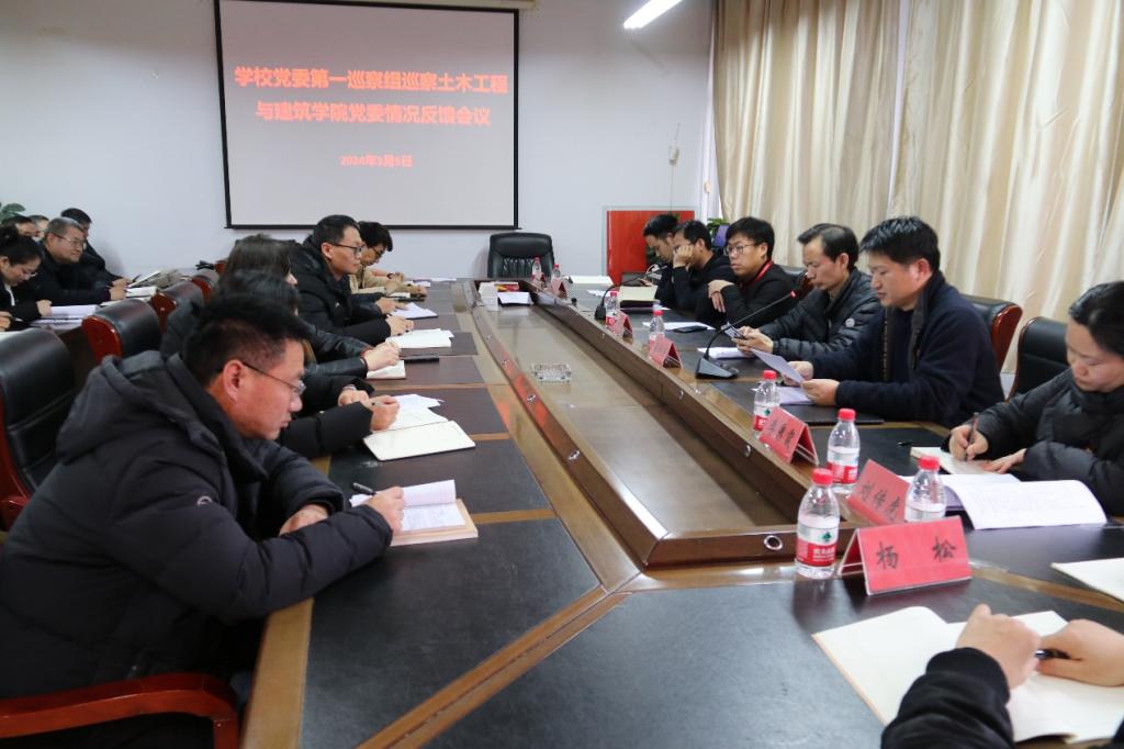 按照学校党委统一工作安排部署,3月5日下午,学校党委第一巡察组巡察yl23411永利官网登录党委情况反馈会议在A09三楼会议召开。党委巡察工作领导小组成员、校党委巡察办主任郭明进同志,校纪检监察二室主任毛克乐同志,第一巡察组组长张胜利同志,副组长李秀霞同志,成员沈敬萍同志、刘传虎同志、杨松同志及我院全体教职工参加会议。会议由院长潘林同志主持。
