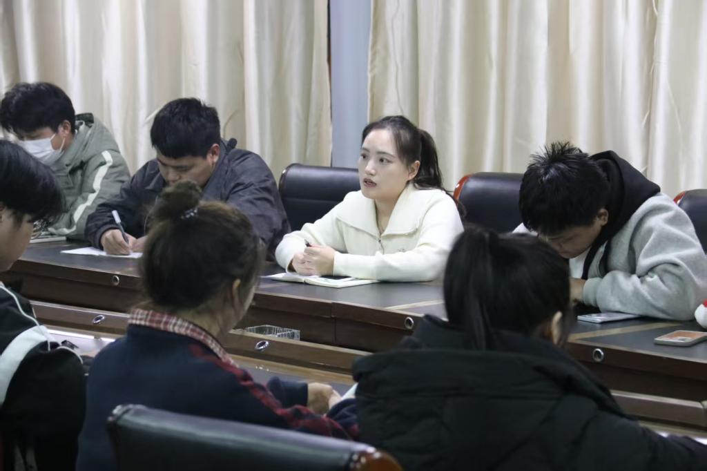 会议伊始,宋紫阁书记发表重要讲话,深刻阐述学生会工作的重要意义。她强调,全体学生会成员要始终在思想上与党的方针政策保持高度一致,积极传播正能量,努力打造精品活动,不断提升学生会的凝聚力与影响力,为学院发展贡献青春力量。随后,宋书记针对各部门工作进行详细指导与规划:组织部需紧密把握团员思想动态,精心策划各类活动,切实提高团支书的思想引领能力;媒体宣传部要积极宣传正能量,精准把控舆论导向,为学院营造良好氛围;实践发展部要精心策划并组织实践活动,着力提高同学们的社会责任感与实践能力;学风建设部要扎实开展学风活动,强化纪律意识,助力优良学风建设;权益创新部要做好卫生监督工作,为同学们营造舒适的学习环境;文体活动部要全力筹备接下来的篮球赛和运动会,丰富校园文化生活;综合事务部要充分发挥协调作用,确保各部门工作顺畅推进。各部门要各司其职,协同配合,共同推动学生会工作迈向新台阶。